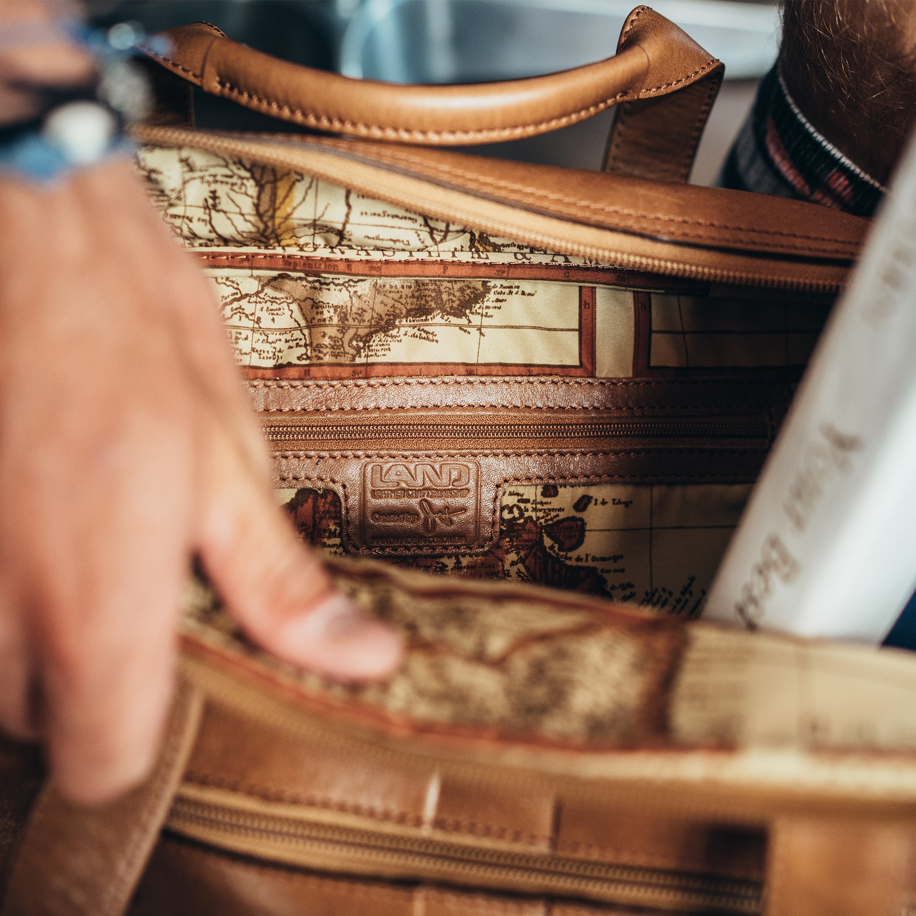 We honor our father's passion, legacy and lifelong commitment to quality and 100% leather craftsmanship by continuing our traditon of offering a lifetime gaurantee on our handcrafted goods. We use natural Colombian, full-grain leathers, high quality YKK and EKA zippers, durable brass hardware made in our own foundry, and use our signature and waterproof Mapa Mundi lining on our products. Our products are all meticously handcrafted by expert artisans in Colombia whose dedication and passion continue to aid us in our quest of offering the best goods leather can offer.